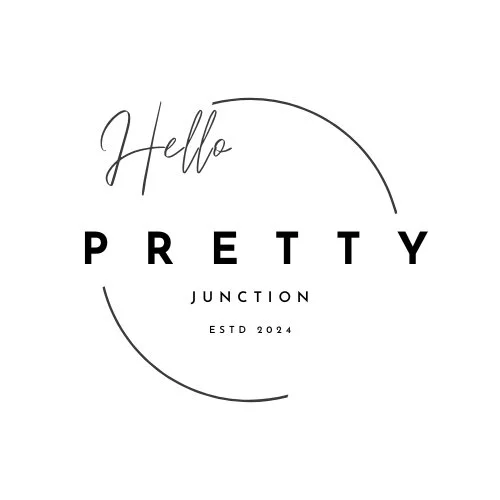 Minimalist logo with the text 'Hello Pretty Junction ESTD 2024' inside a circular design.